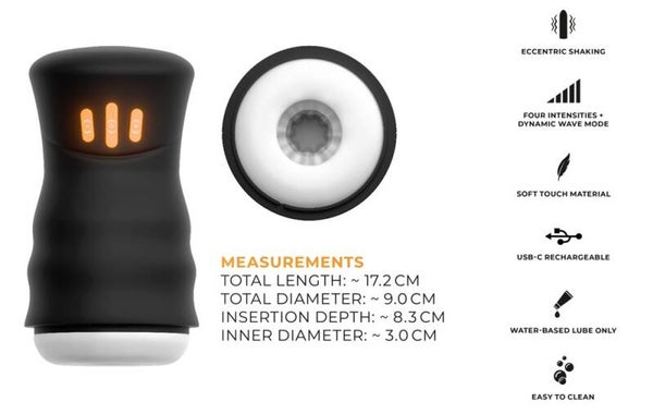 Handlich kompakter Masturbator GYRO von You2Toys im stylisch diskreten Design mit Schutzkappe. Innen wird der Penis in weiche, gefühlsechte Noppen und Rillen gebettet. Der leistungsstarke und ultraschnelle Gyro-Motor versetzt den leisen Masturbator dann in rüttelnd-rotierende Action. Mit bis zu 2850 unregelmäßigen Umdrehungen für bis zu 5700 Schüttelbewegungen pro Minute wird der Penis äußerst intensiv massiert. Es ist fast unmöglich, nicht zu kommen!